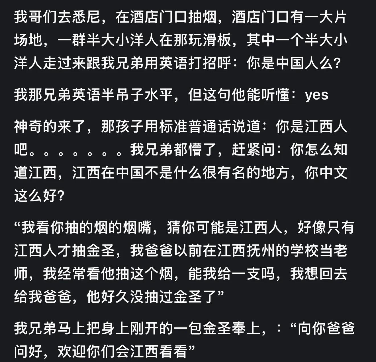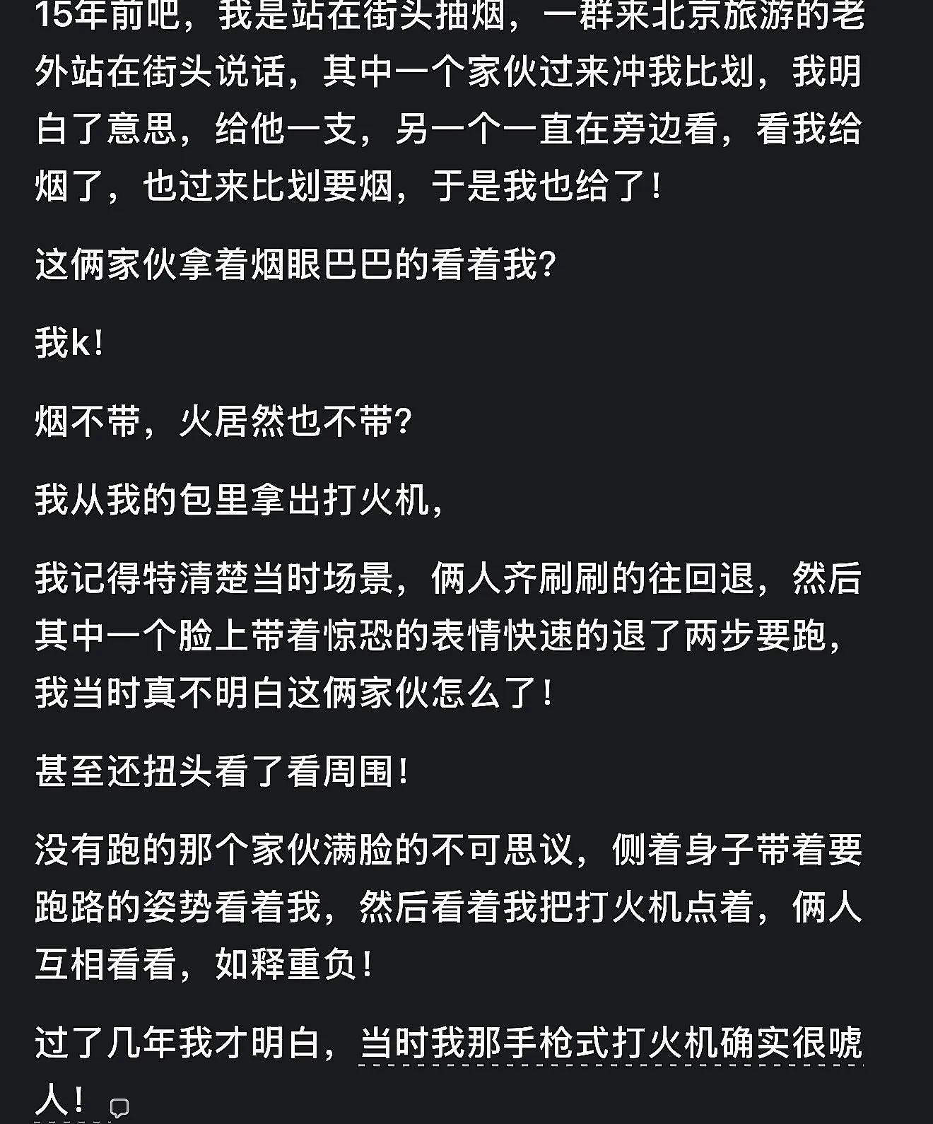 一次在美国转灰狗的间隙,便利店门口吸烟点抽烟:被个小黑要了一支。跟大部分小黑不同,没什么口音,谈吐也很礼貌。